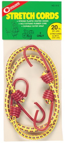 Coghlan's 20” Stretch Cord is a sturdy stretch cord with plastic coated hooks on each end and has dozens of uses. It will not loosen in transit, is of dimensions 33 inches (83 centimeters) and comes as one per bag.